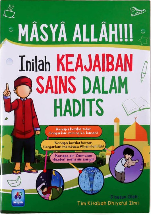 Buku Masya Allah Inilah Keajaiban Sains Dalam Hadits Tim Kitabah Dhiya’ul Ilmi, Pustaka Arafah Dunia dikejutkan dengan penemuan-penemuan modern. Ada alat ini dan itu … Dan sungguh terdapat firasat yang kuat dari para ulama terkait hal tersebut. Seperti halnya Imam an-Nawawi yang mengkiaskan jual beli lewat telepon, apakah sah? Atau selevel Imam Ibnu Taimiyah yang mengkiaskan haji dan umrah naik pesawat dari mana memulai miqatnya? Terlebih penelitian-penelitian yang ada sekarang, justru membenarkan apa yang disabdakan oleh Nabi shallallahu ‘alaihi wa sallam. Mau tahu … apa sajakah itu? Di awal buku, kita akan disuguhi pertanyaan, “Mengapa Dilarang Meniup Makanan?” Lalu “Makan dan Minum Jangan Berdiri!”, “Stop Tidur Tengkurap!”, “Mengapa Dianjurkan Miring Ke Kanan Ketika Tidur?”, “Kucing Binatang Penyuka Kebersihan”, “Rahasia Keajaiban Sayap Lalat”, “Minyak Zaitun yang Diberkati”, “Anggota Tubuh Saling Merasakan Sakit”, “Mengapa Dianjurkan Mengucap Alhamdulillah Saat Bersin”, “Saat Menguap. Tutuplah dengan Tangan”, “Tidur Malam dengan Mematikan Lampu”, “Makan dan Minum Tidak Boleh Berlebihan”, dan ditutup dengan pembahasan “Habbatus Sauda’ Obat Kaya Manfaat”.
